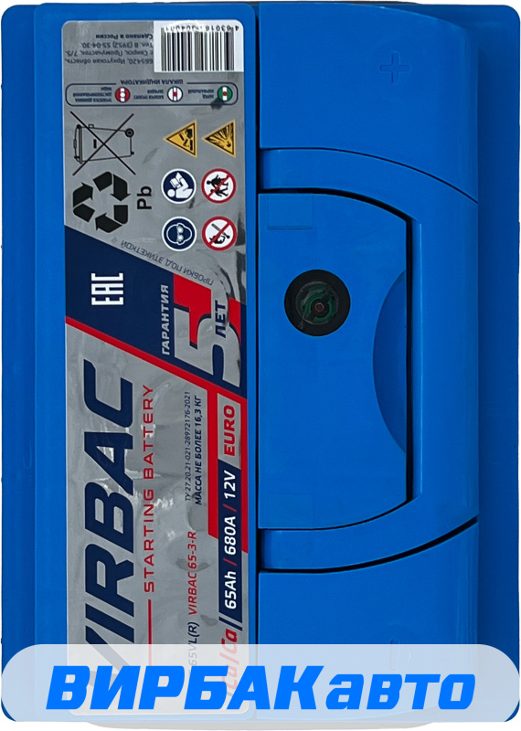 Аналоги аккумулятора VIRBAC 65 Ач от 640 А обратная полярность европейский тип корпуса